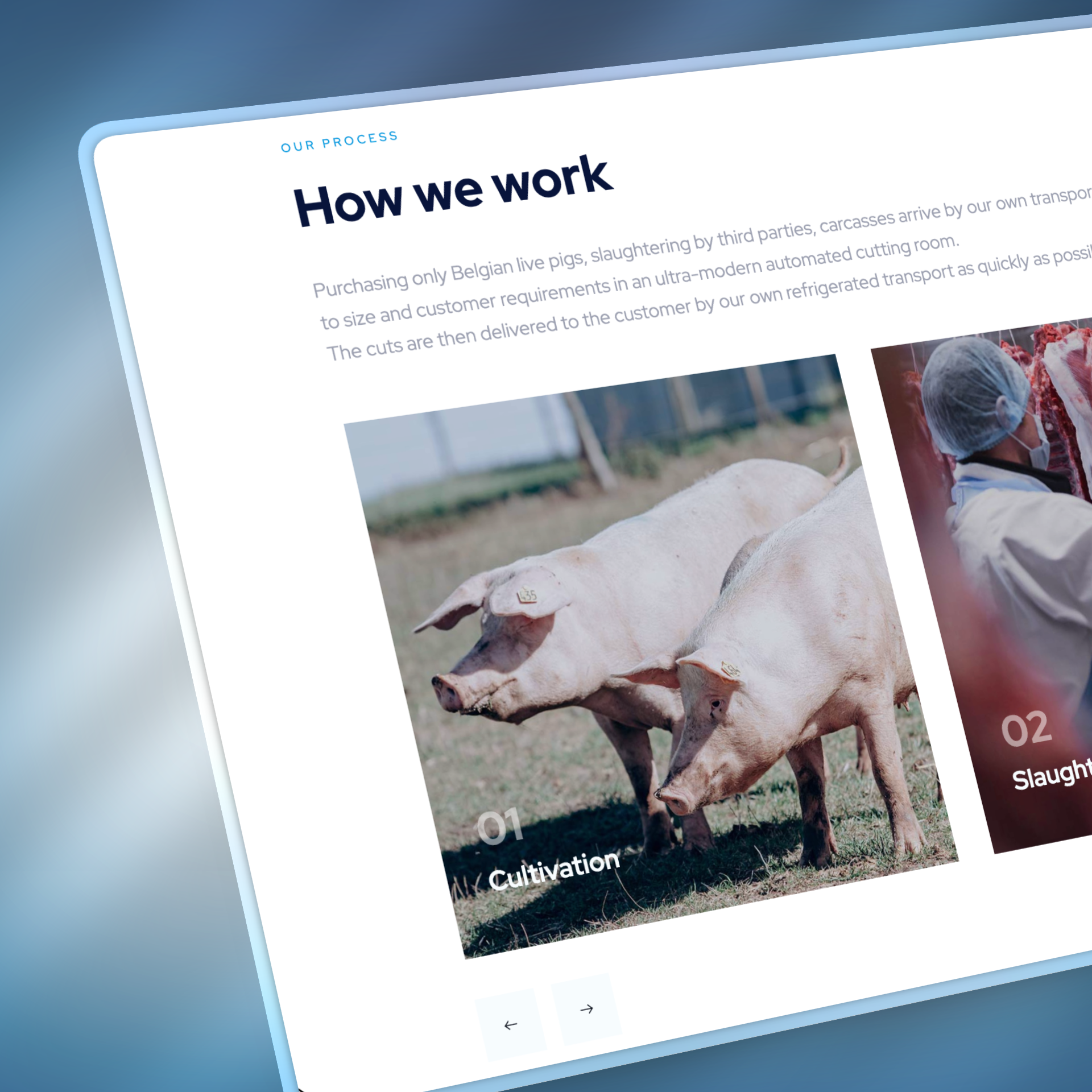 The company needed a modern online presence that matches their reputation built over 40+ years, while staying clear and straightforward for B2B visitors.  It had to communicate the essentials fast: daily-fresh delivery, strict quality control, and transport that stays within temperature norms from departure to arrival.  At the same time, the site needed distinct entry points for different customer types (butcheries, manufacturers, catering suppliers, retailers) and an easy way for candidates to discover open roles.